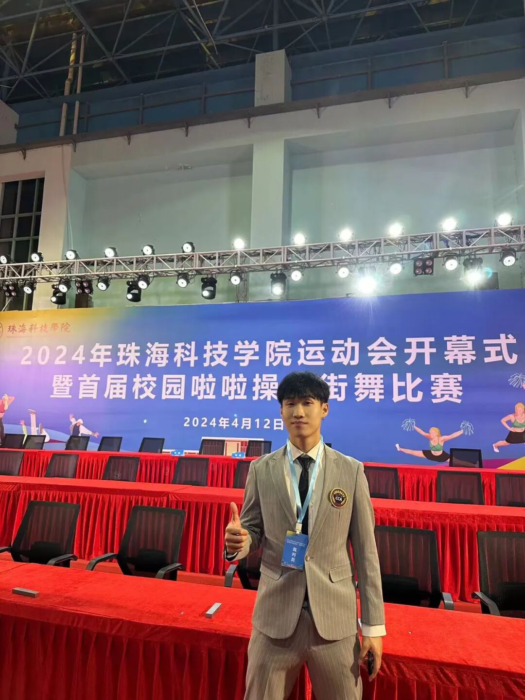 ▲丁明轩在首届校园啦啦操、街舞比赛担任裁判员
