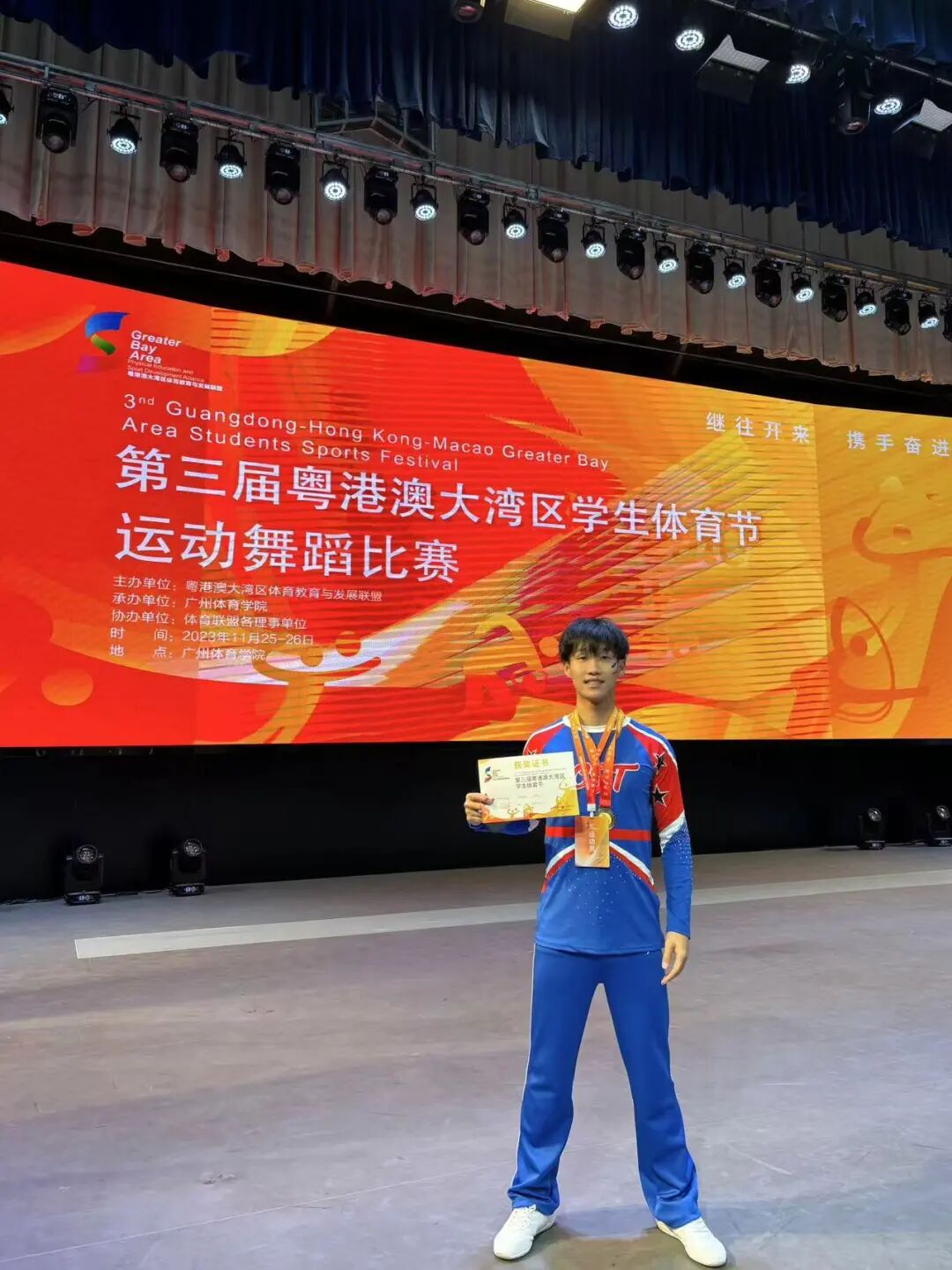 ▲丁明轩在第三届粤港澳大湾区学生体育节运动舞蹈比赛获奖