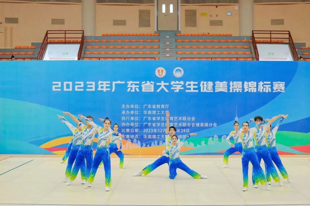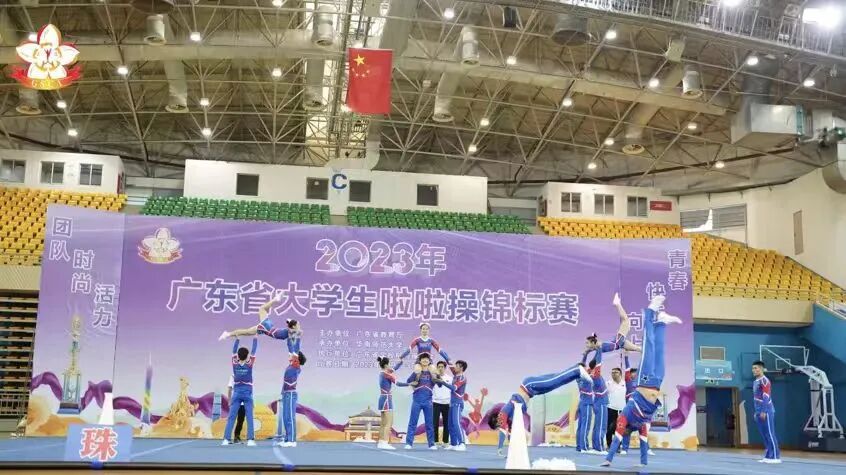 ▲啦啦操队参加广东省大学生健美操锦标赛