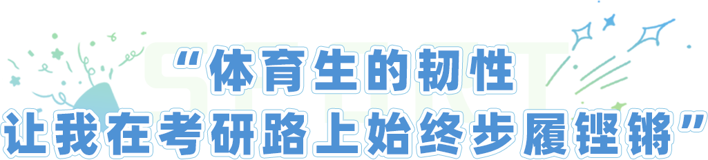 “自律地去执行学业以及训练的任务安排,一步一步地将小目标实现,就能无限靠近大目标。”丁明轩在2024年2月寒假开始规划考研复习,有条不紊地按自己制定的计划进行备考。他在前期着重于熟悉专业课课本,搭建好知识的体系框架;5、6月考取高中体育教师资格证并顺利通过大学生英语六级考试,同时进一步深化基础知识;7月开始进行专业课知识的集中背诵;11月开始专业课模拟考试;12月则顶住压力进行最后的冲刺。“背诵专业课时,我每周都会制定相应的学习计划,每天晚上都会坚持进行复盘,这样一来我可以对第二天的计划及后一周的计划进行及时的调整。”细数备考时完成的一个个小目标,丁明轩总结,“不骄不躁,按部就班就是胜利。”