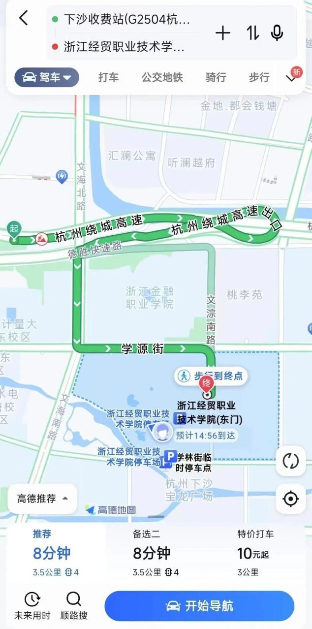 终点站选择杭州站/杭州东站的,下车可乘地铁1号线(萧山国际机场方向)到文海南路站下车,从文海南路地铁站A口出站后,可按导航骑行或步行到达学校。