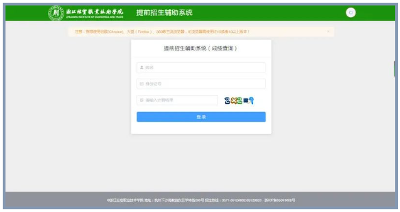 1.登录浙江经贸职业技术学院招生信息网(http://zs.zjiet.edu.cn/),点击“提前招生辅助系统”。