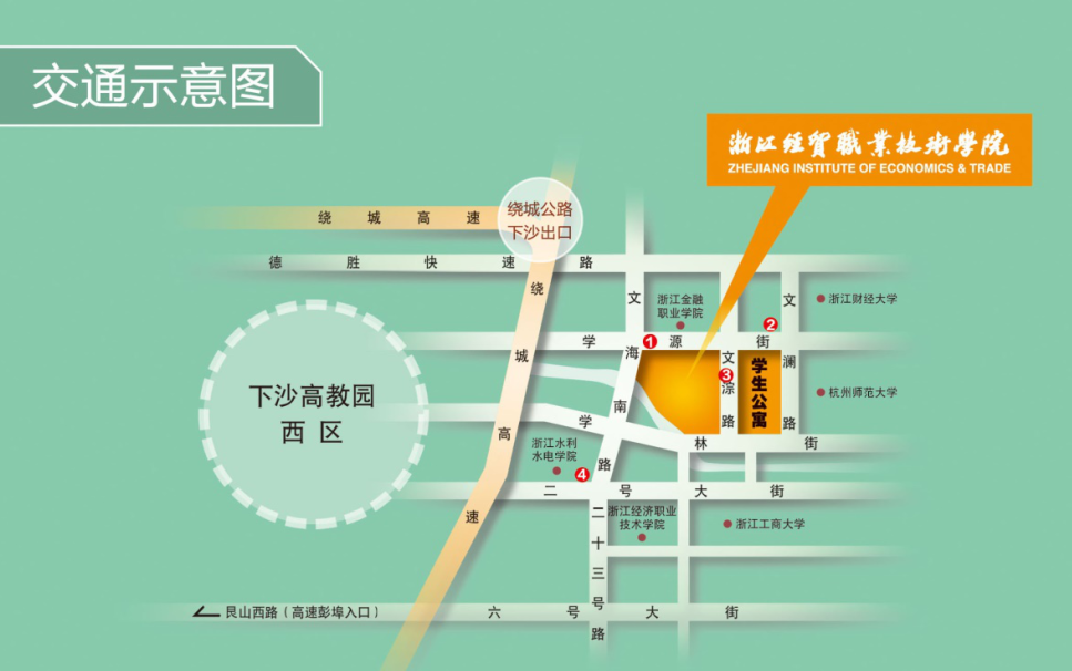 汽车西站来的学生可乘坐地铁3号线(星桥方向)到“西湖文化广场”→转1号线(萧山国际机场)在“文海南路”下,从文海南路地铁站A口出,步行15分钟到学校。