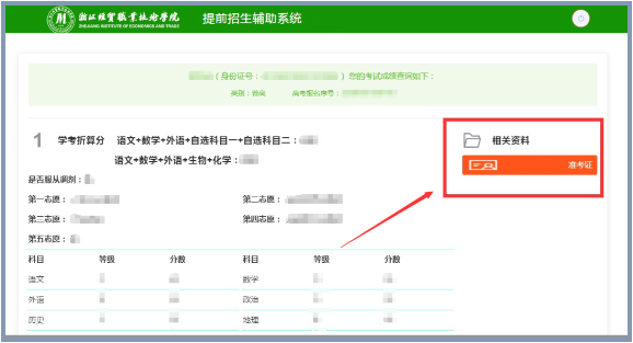 3.进入提前招生辅助系统,点击下载“准考证”。