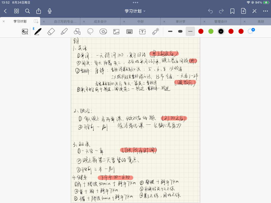 陈嘉政就以备考为目标制定日程安排