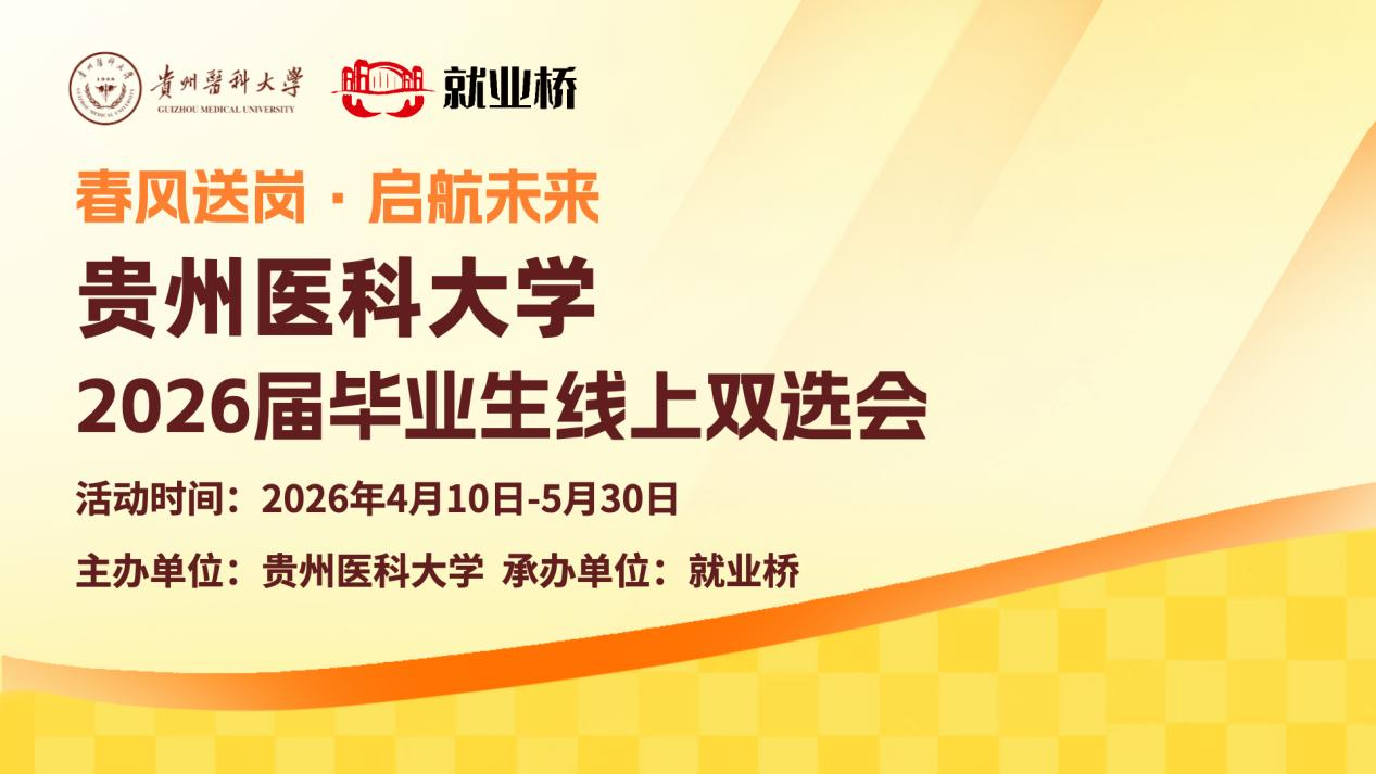 “春风送岗·启航未来”贵州医科大学2026届毕业生线上双选会:汇聚名企优岗,直通春季招聘。借助本次活动汇聚春季招聘优质岗位资源,通过线上双选会实现简历一键投递、供需精准匹配,让你与HR实时沟通,高效锁定心仪席位!