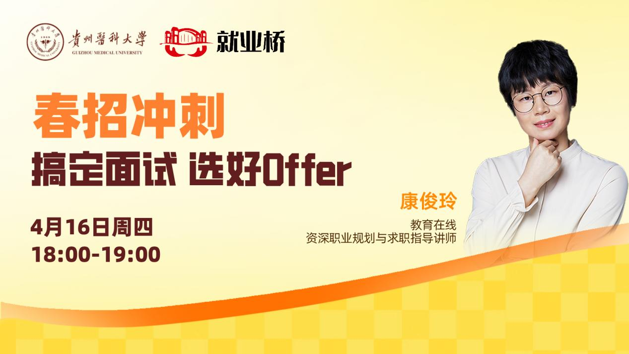 春招进入冲刺阶段,你是否也在经历这些焦虑:无实习经历该怎么打动面试官?面试屡屡受挫,不知问题出在哪里?收到offer却不敢轻易签约,怕踩坑、怕选错?别慌!学校联合就业桥为你带来春招专场直播讲座——《搞定面试,选好offer》,帮你抓住春招机遇,稳稳上岸!