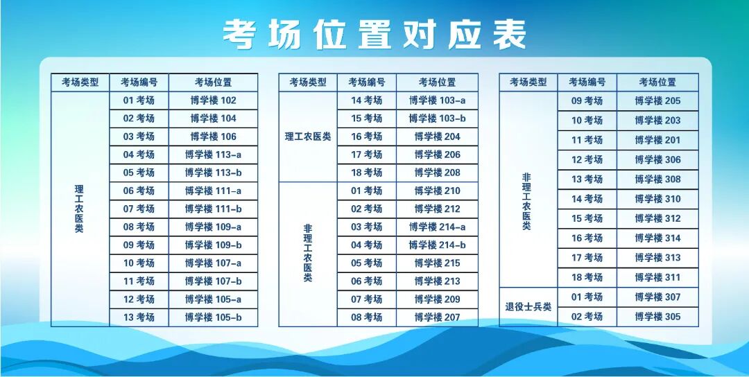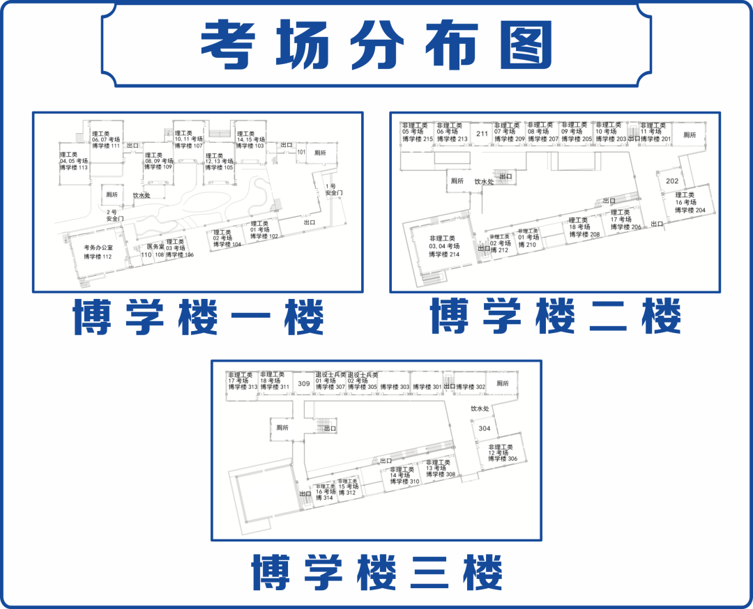 四考场设置本考点考场设置在博学楼(考场分布详见文末),考生可于2026年4月15日15:20-16:20到考点熟悉考场。