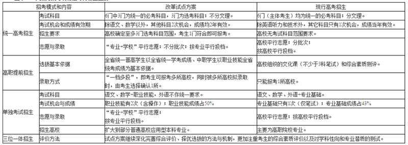 二是推进综合评价选拔。统一高考招生实行高考与学考、必考与选考相结合,高职提前招生实行高中学考或职业技能与综合素质相结合,单独考试招生实行文化素质与职业技能相结合,三位一体招生实行统一高考、高中学考和综合素质评价相结合。四类考试招生模式均强调评价选拔的综合性,推进人才评价选拔从单一向综合转变。