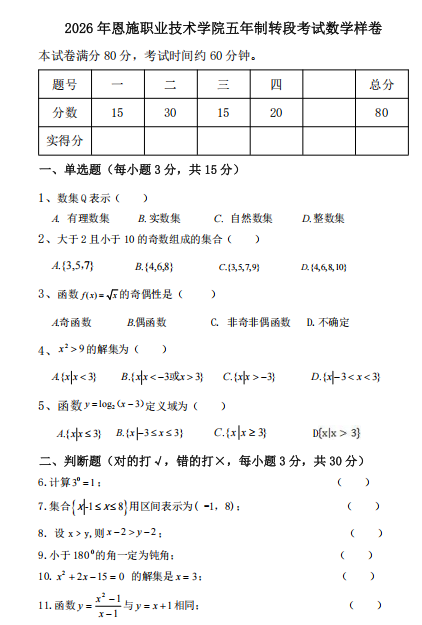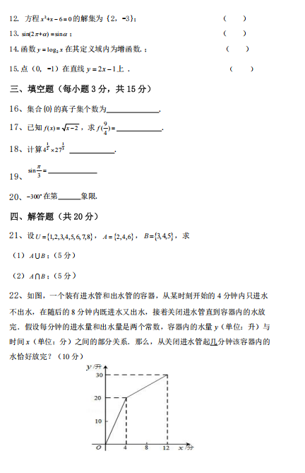 (1)理解函数的概念,会求函数的定义域、函数值。