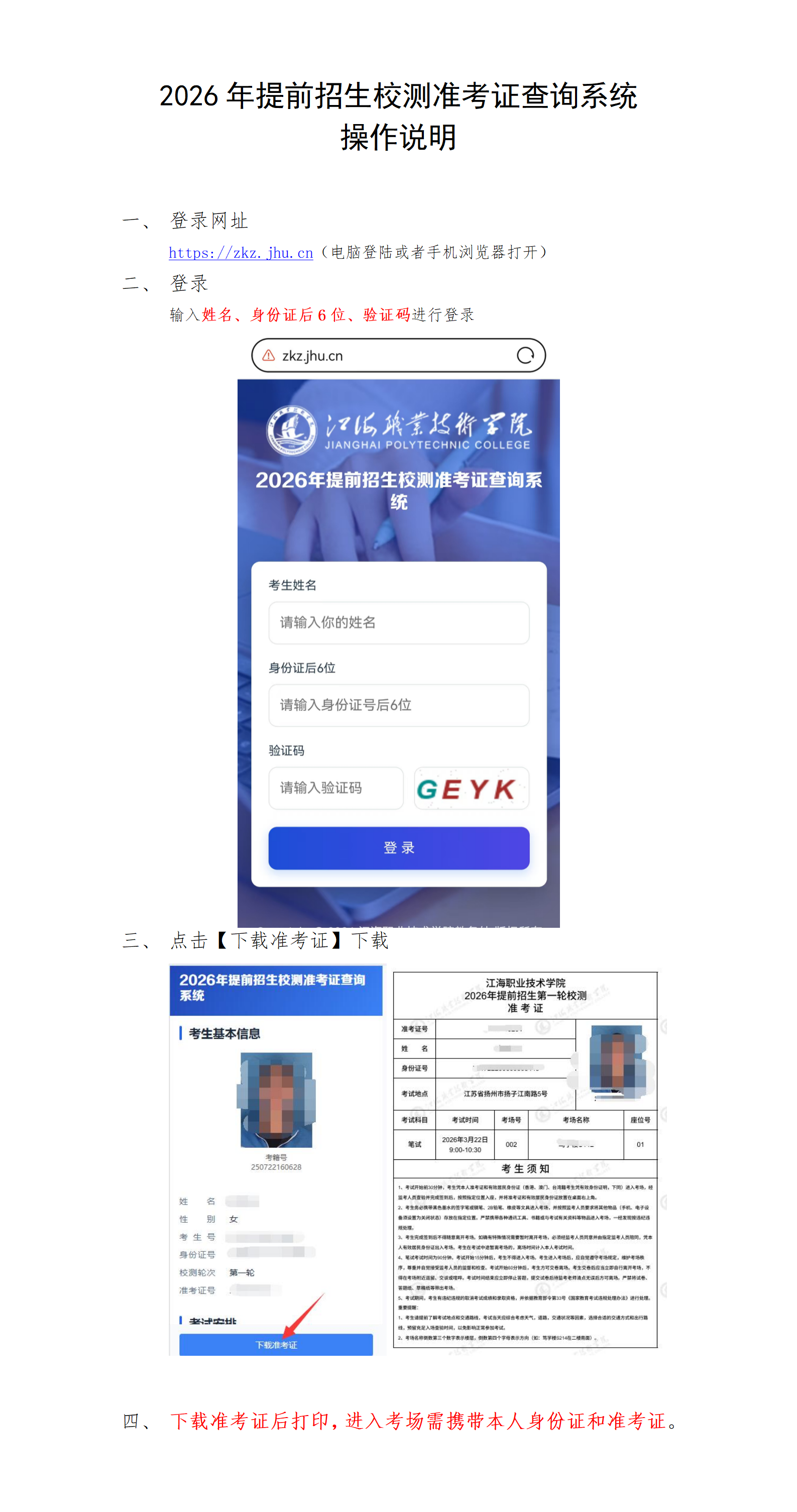 2、2026年提前招生校测准考证查询系统操作说明