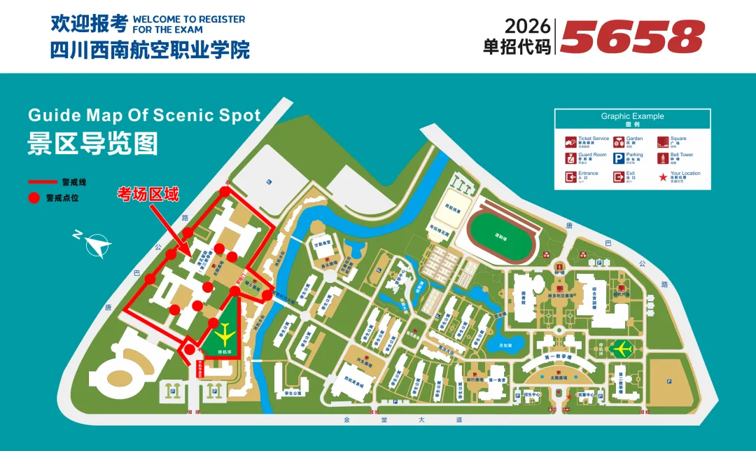 我院考点位于四川省成都国际职教城(西区)学府大道996号。3月20日为单招开放日,各位考生可前往西南航院熟悉考场情况。