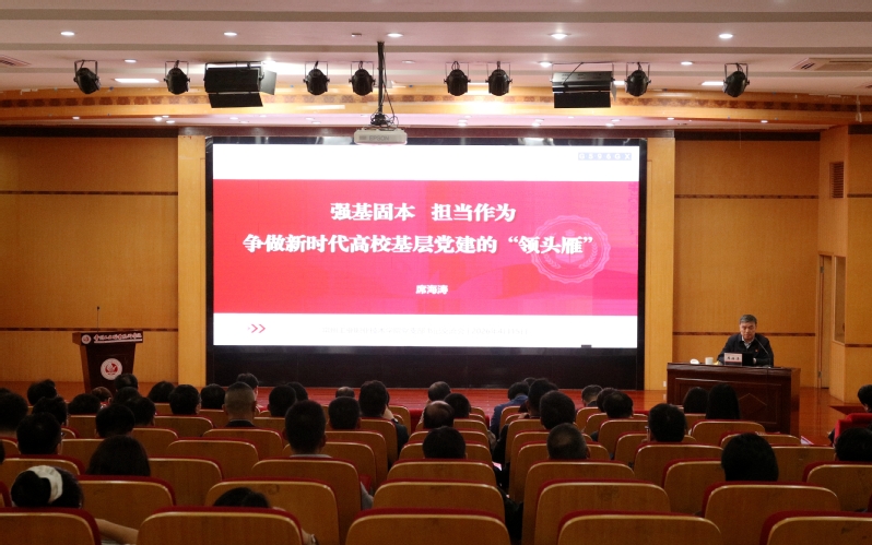 党委书记席海涛以《强基固本 担当作为——争做新时代高校基层党建的“领头雁”》为题授课。他表示,省委巡视反馈意见是学校党建工作提质增效的重要遵循。对照巡视反馈暴露的基层组织建设短板,必须树牢“大抓基层”导向,把力量汇聚到一线,把责任压实到一线,不断健全完善党建工作激励与高层次人才政治吸纳等长效机制,以党建活力激发干事动力、凝聚发展合力。