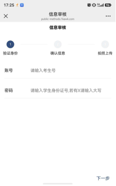 3、进入以下页面,输入考生号、身份证号,点击下一步。