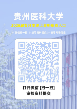 1、所有学生根据要求在线上提交审查资料,扫描二维码,使用考生号、身份证号登录贵州医大科学报名资格审查小程序,上传相关材料;