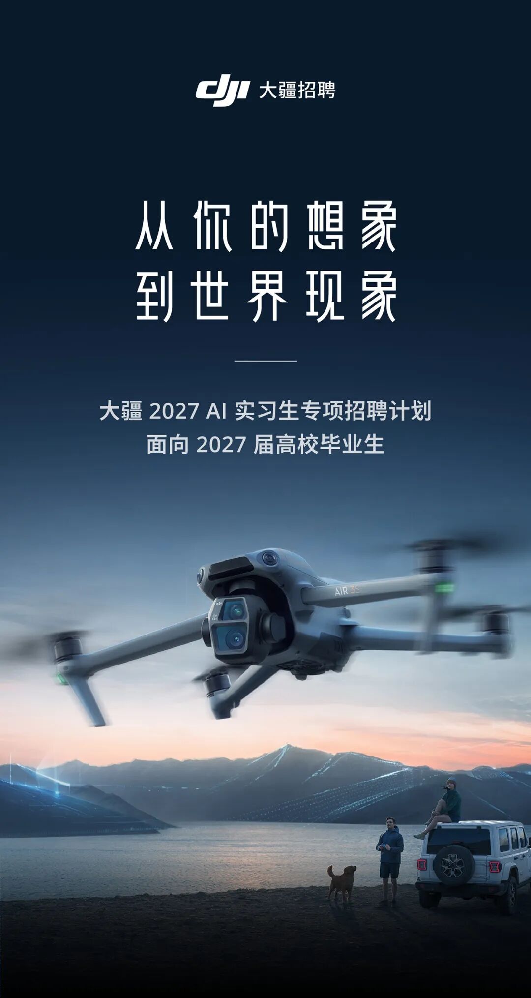 DJI 大疆 AI 实习生专项招聘计划开启,用 AI 定义飞行与影像的未来!