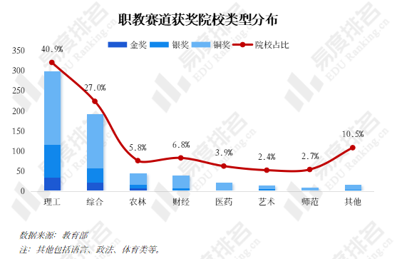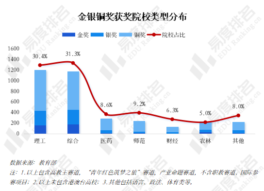 理工和综合类院校金奖获奖占比高达83.3%