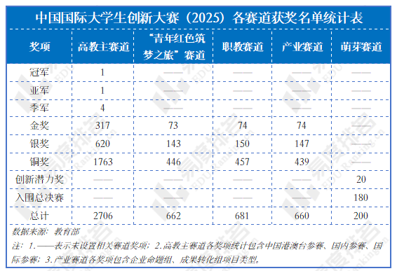 中国国际大学生创新大赛(2025)获奖统计