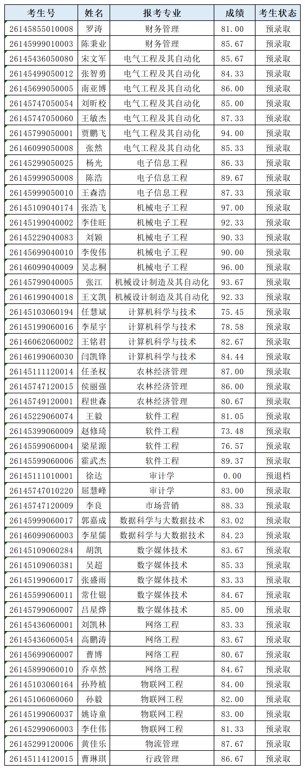目前,我校2026年专升本退役大学生士兵免于文化课考试第二次职业适应性测试工作已经结束,经学校专升本招生录取工作领导组审核同意,现将职业适应性测试成绩及拟录取名单进行公示,公示期为7个工作日。