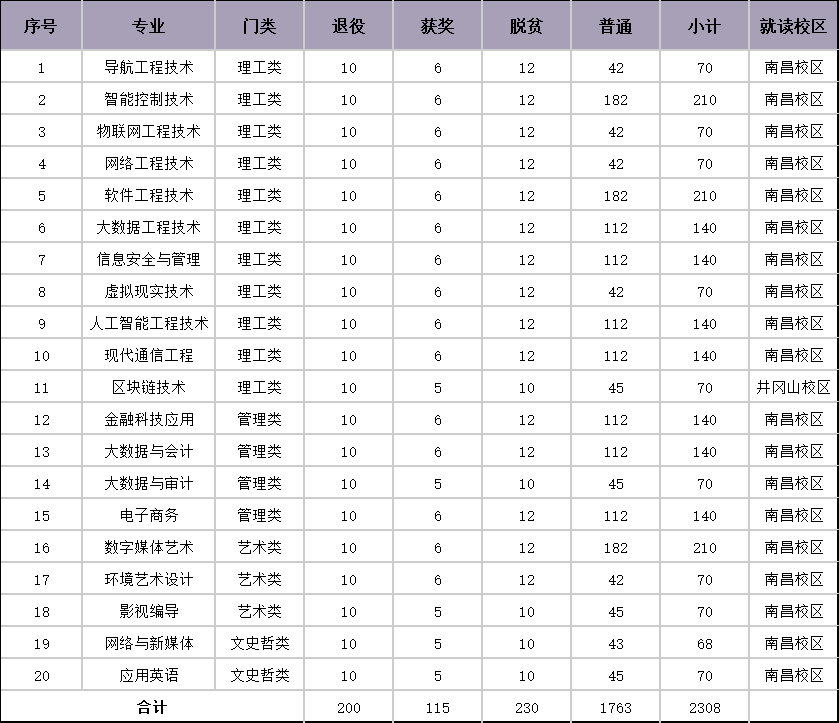 2026年江西软件职业技术大学专升本招生计划
