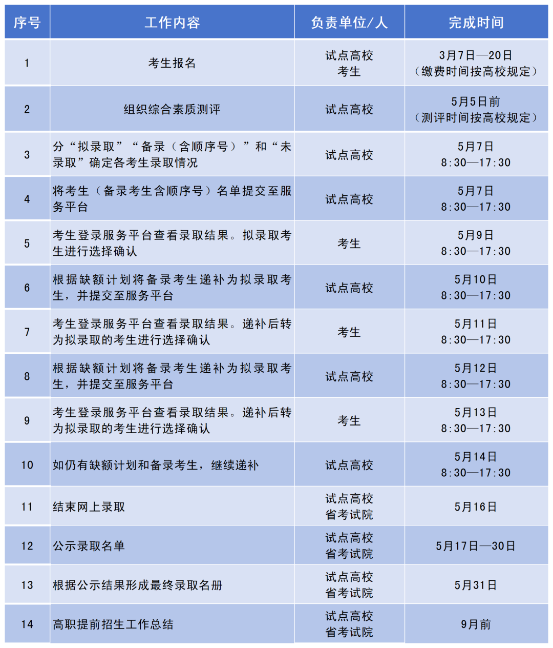 1.考生请务必仔细查看2026年浙江省高职提前招生日程安排表,首轮拟录取考生在规定时间内(5月9日8:30-17:30)登录浙江省教育考试院招生考试信息管理系统平台(https://pgzy.zjzs.net:4431/login.htm)进行选择确认。如有考生放弃拟录取,则缺失名额由备录考生根据成绩顺序依次转为拟录取。备录考生根据录取进程,待转为拟录取后需登录服务平台进行选择确认。