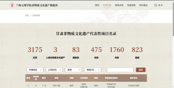 数字化保护走在全省前列,让非遗实现云端永久保存。建成了集教学、保护、展示于一体的非遗知识馆与非遗数据库。系统收录甘肃民间文学、传统音乐、传统舞蹈、传统戏剧、曲艺、传统美术、传统技艺、民俗等各类资源数据;拍摄制作23部非遗纪录短片,运用高清摄像、录音、口述史整理等技术,为花儿、皮影、木雕、剪纸、传统服饰等项目建立数字档案,实现云端保存、永久传承。