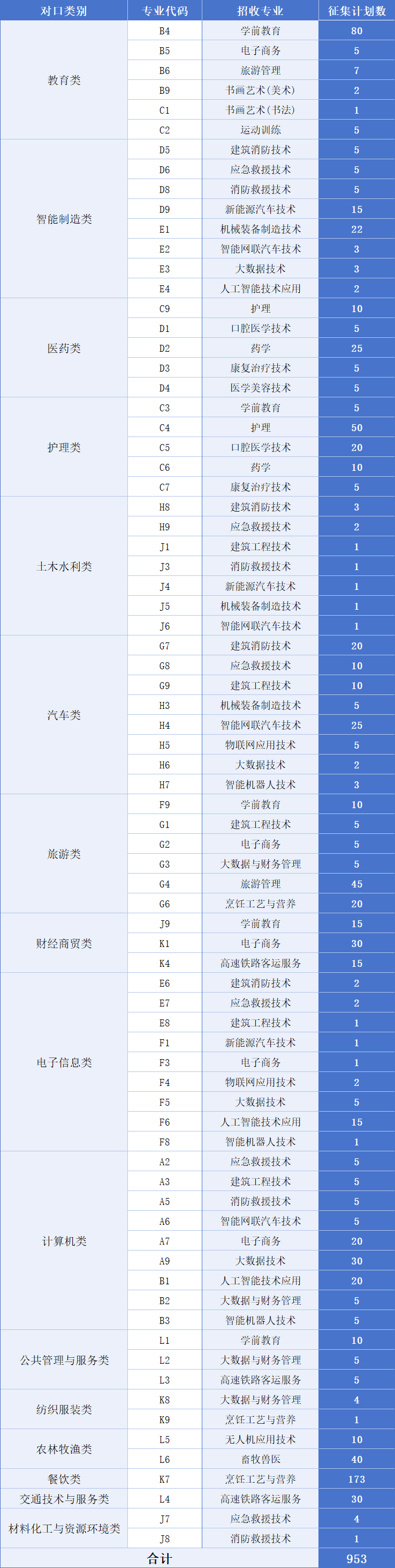 征集专业及计划