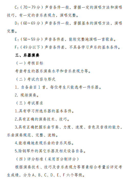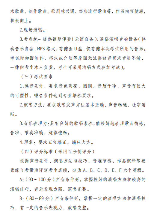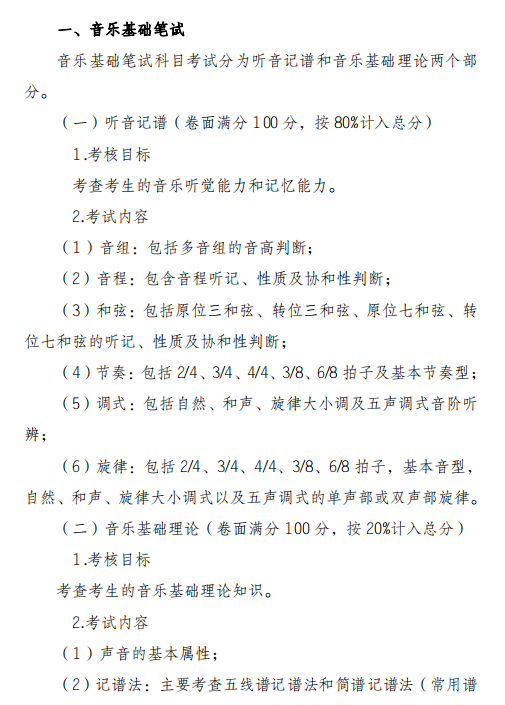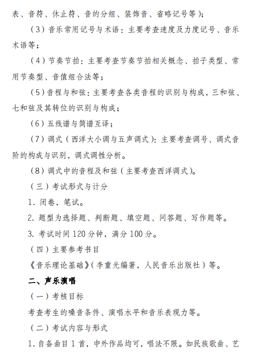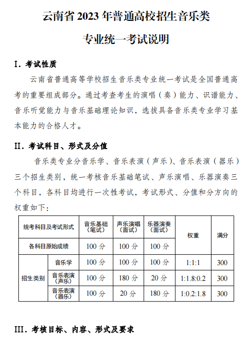 云南省2023年普通高校招生音乐类专业统一考试说明