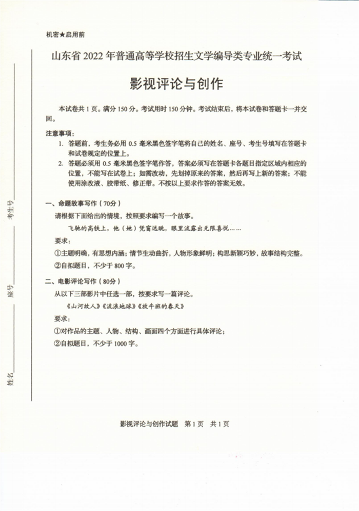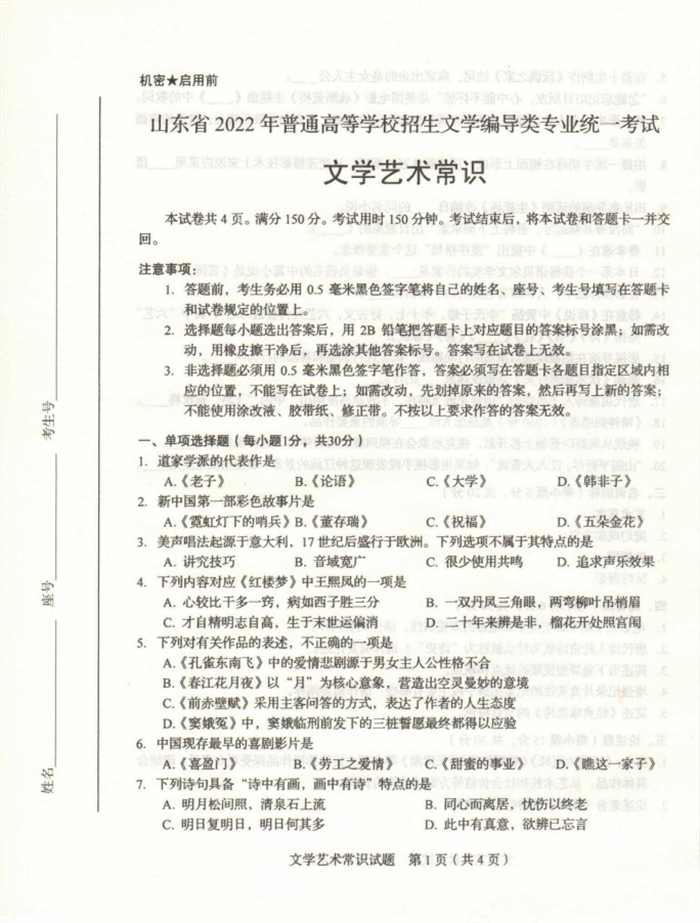 文章来源:山东省教育招生考试院 山东省2022年普通高等学校招生文学编导类专业统一考试试题