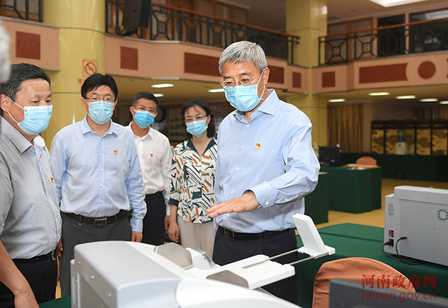 7月6日,省委副书记、省长尹弘赴登封市检查高考准备工作,强调要认真贯彻习近平总书记重要指示精神,强化责任,细化举措,以最高标准、最严要求,保障考生和考务人员生命健康,确保今年高考安全平稳、公平公正。 尹弘首先来到登封市嵩阳高中,逐一检查体温检测、防疫特殊通道等场所,走进教室认真察看考生间距、环境消毒、指纹验证等措施。尹弘和备考考生亲切交流,勉励他们放松心态、注意休息、良好发挥,顺利完成人生大考,接受祖国挑选。 在视频监考室、监考员培训教室,尹弘向考务工作人员表示亲切慰问,详细询问工作流程、应急举措、纪律要求等情况。他指出,高考关乎考生前途命运,关系千家万户,涉及教育公平正义,是群众最关心、最直接、最现实的利益问题。今年高考在疫情防控的条件下举行,要完善应急预案,强化工作人员培训,落实落细各项疫情防控举措,确保安全平稳;要切实加强考场管理,严格履行监考人员职责,严明考试纪律,杜绝任何违规、舞弊行为;要满腔热情、严密细致,在交通出行、防暑降温、周边环境、食品安全等方面加强综合保障,为考生营造安全舒心的考试环境。 来到河南省招生考试学术交流中心,尹弘实地查看试卷扫描大厅和网上评卷演示,仔细检查扫描质检、试卷保密室巡查监控、网络安全保障等措施。尹弘强调,阅卷工作社会各方面高度关切,要落实试卷安全保密管理规定和工作人员安全保密责任,有效运用科技手段,保障试卷安全,保障网络安全;要坚持严格规范的评分标准,确保高考公平公正。 省教育厅党组书记、厅长郑邦山,省招办党委书记、主任刘刚陪同检查。