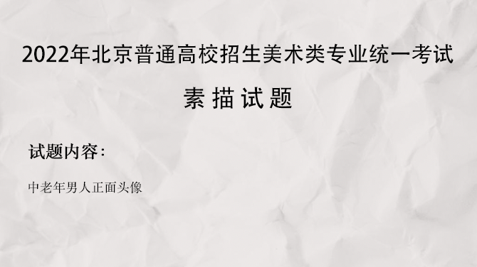 考试时间:2021年12月19日,上午8:30—11:30色彩,下午13:00—13:30速写,素描13:50—16:50。 考试分值:各科目考试满分均为100分,总满分300分。 素描考题:中老年男人正面头像