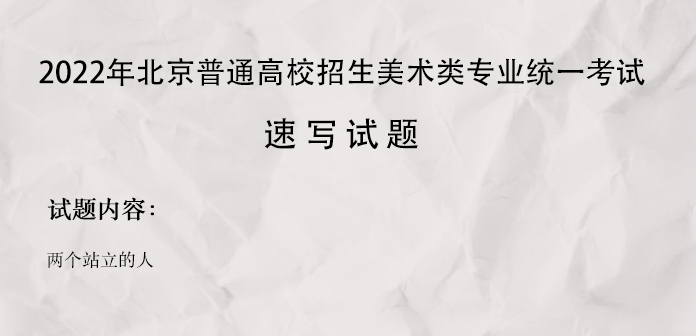 考试时间:2021年12月19日,上午8:30—11:30色彩,下午13:00—13:30速写,素描13:50—16:50。 考试分值:各科目考试满分均为100分,总满分300分。 速写考题:两个站立的人