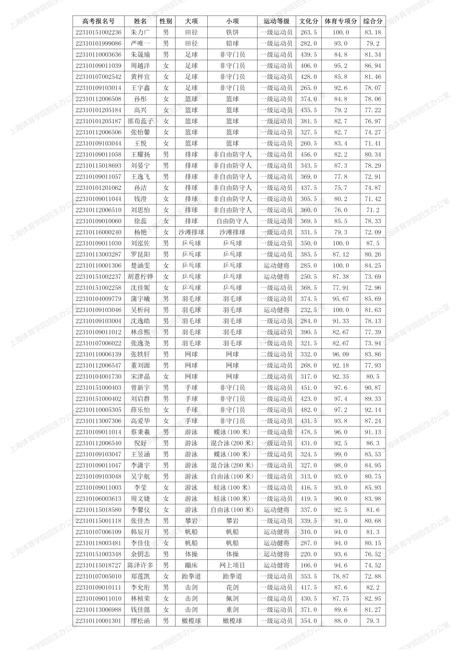 公示期为2022年8月19日至8月25日。公示期间如有异议请在工作时间(工作日9:00-11:00;14:00-16:00)以实名方式提出,逾期不予受理。正式录取名单以教育部、国家体育总局及上海市教育考试院审核通过为准。