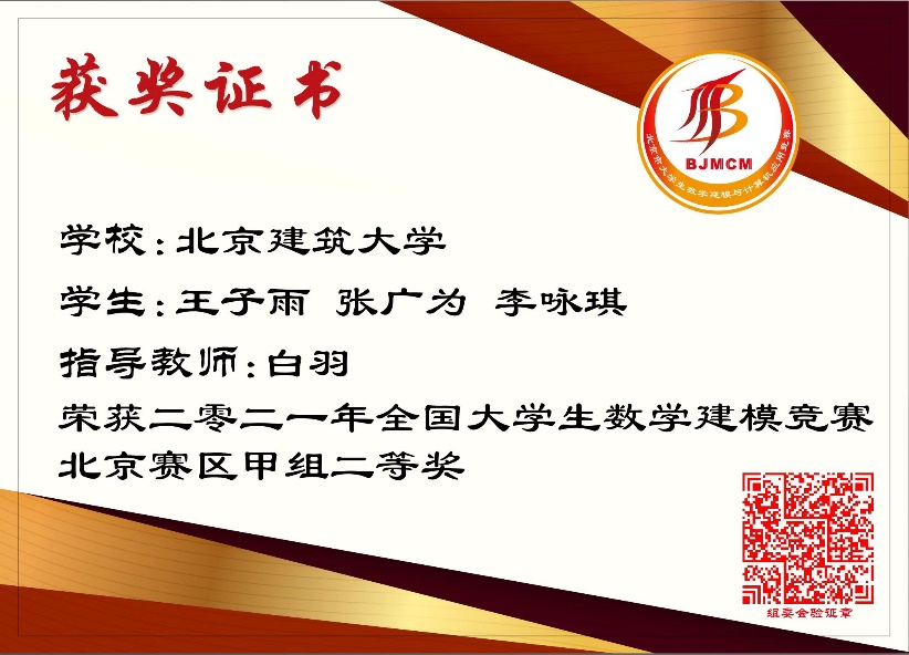 二零二一年全国大学生数学建模竞赛北京赛区甲组二等奖