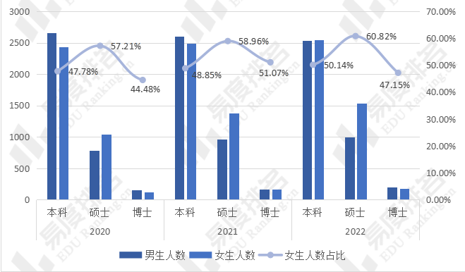 西农本科毕业生人数十分稳定,硕、博毕业生人数大幅增长。学校三年间的本科毕业人数均在5100人左右,基本维持不变,2022年硕博毕业生人数共计2918人,较2020年增长约38.56%。