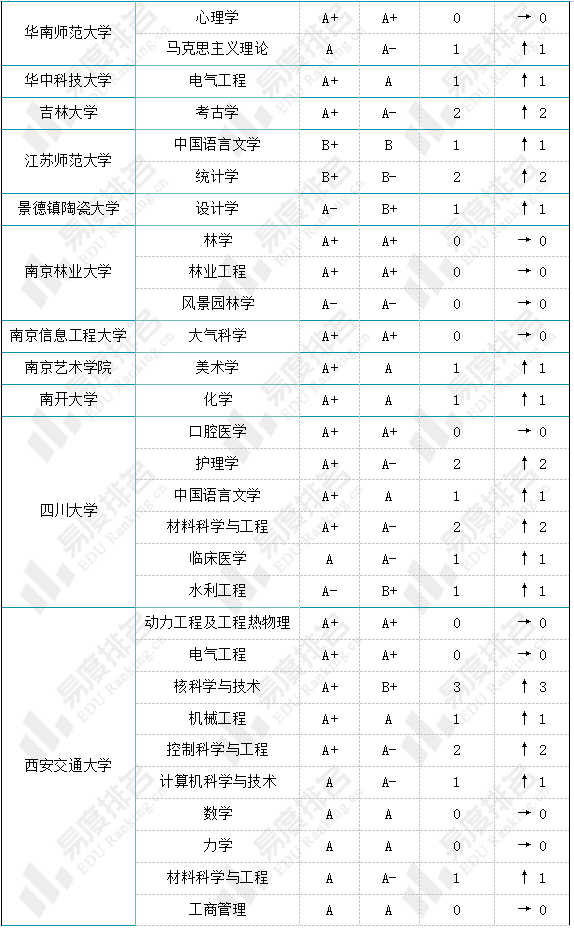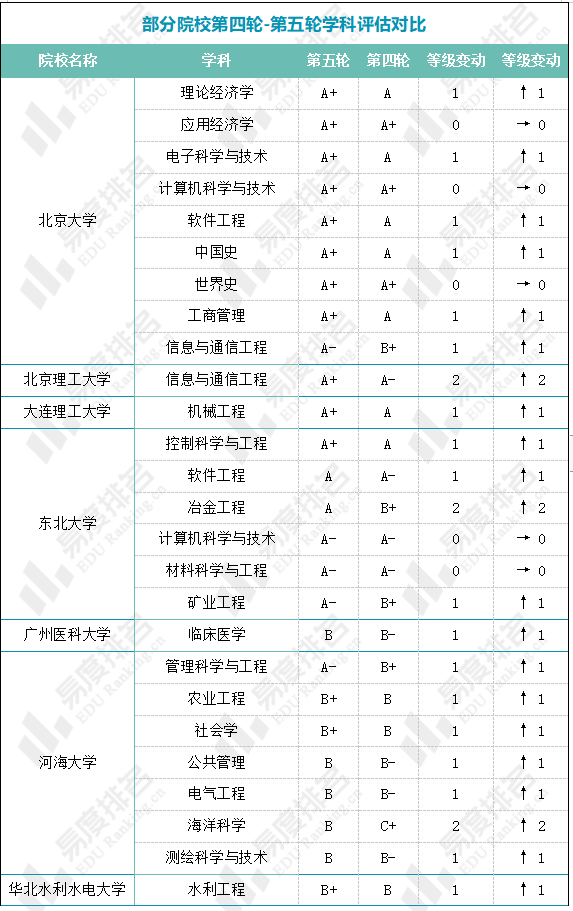 9所高校的20个学科等级与第四轮保持一致,其中北大应用