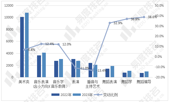 注:音乐表演(含小方向)包含:打击乐、键盘演奏、流行演奏、民族器乐、声乐演唱、西洋管乐、西洋弦乐