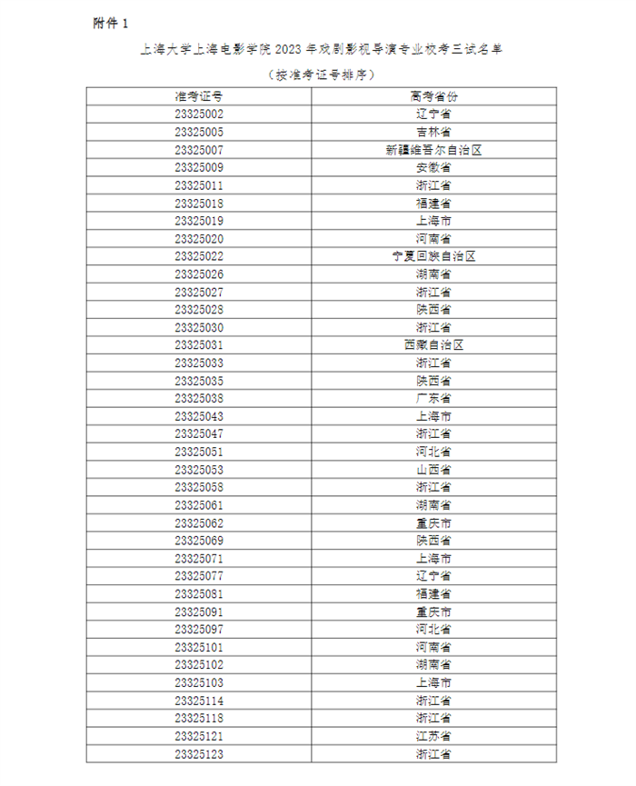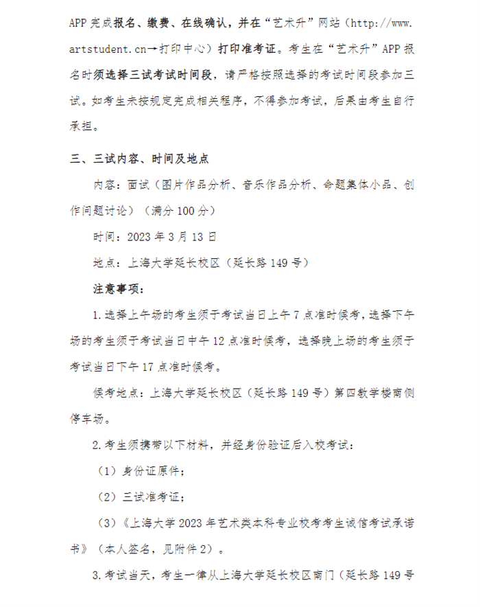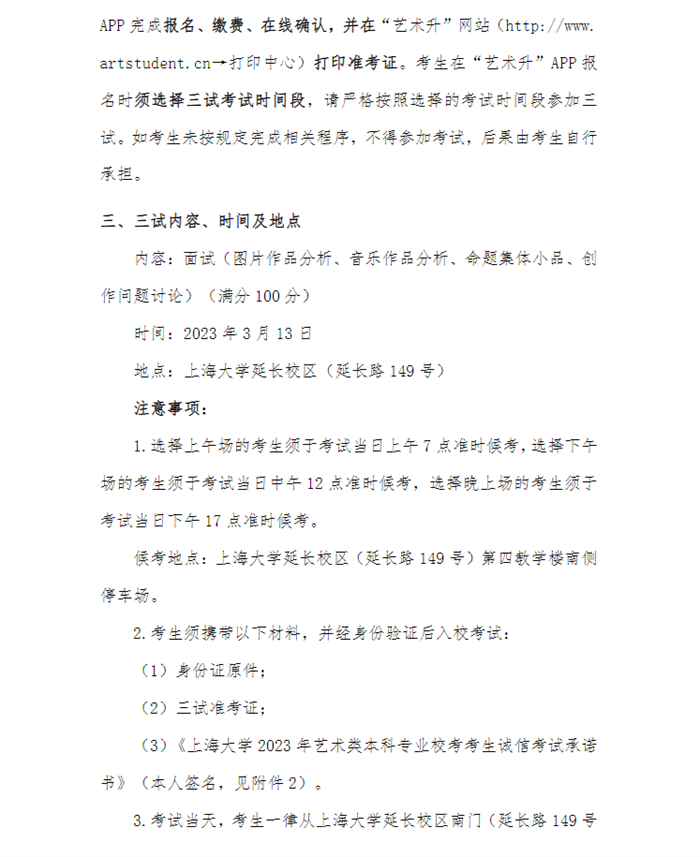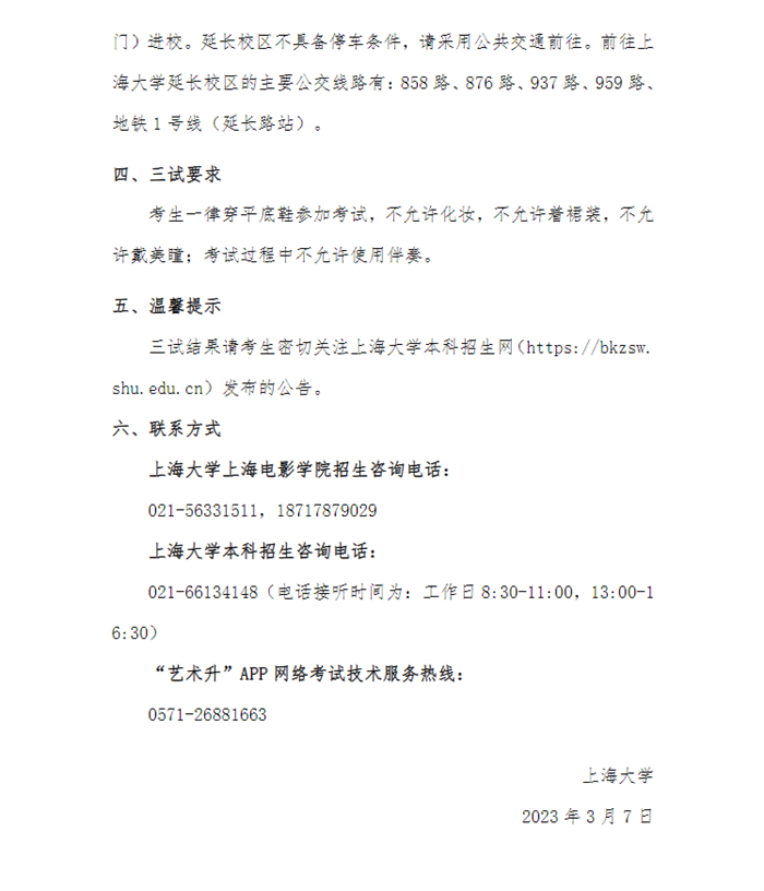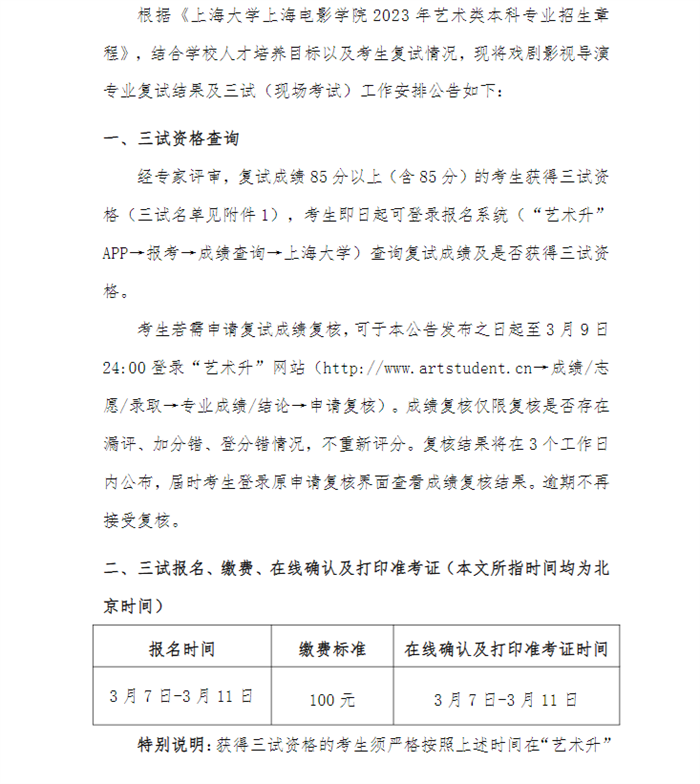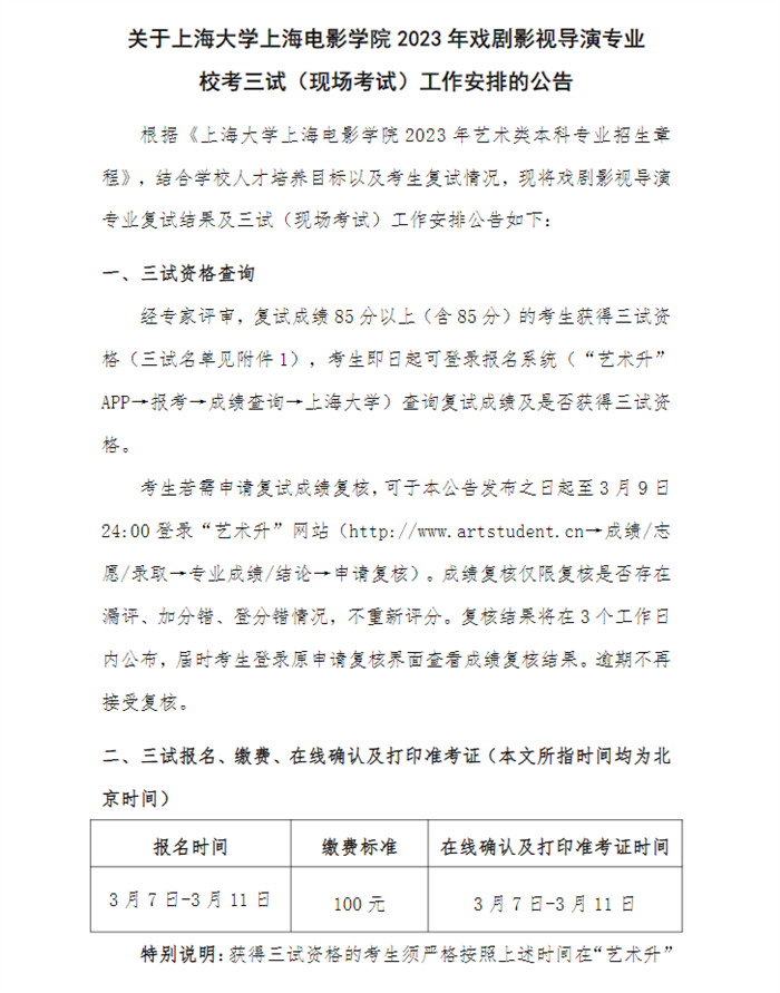 关于上海大学上海电影学院2023年戏剧影视导演专业校考三试(现场考试)工作安排的公告