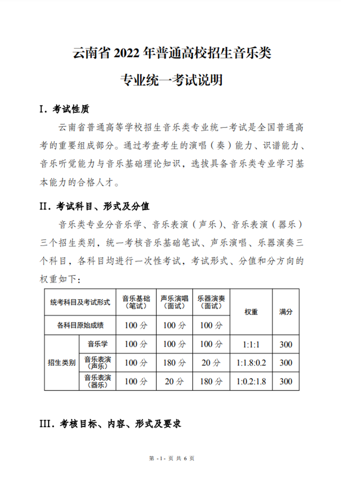 文章来源:云南省招生考试院 云南省2022年普通高校招生音乐类专业统一考试说明