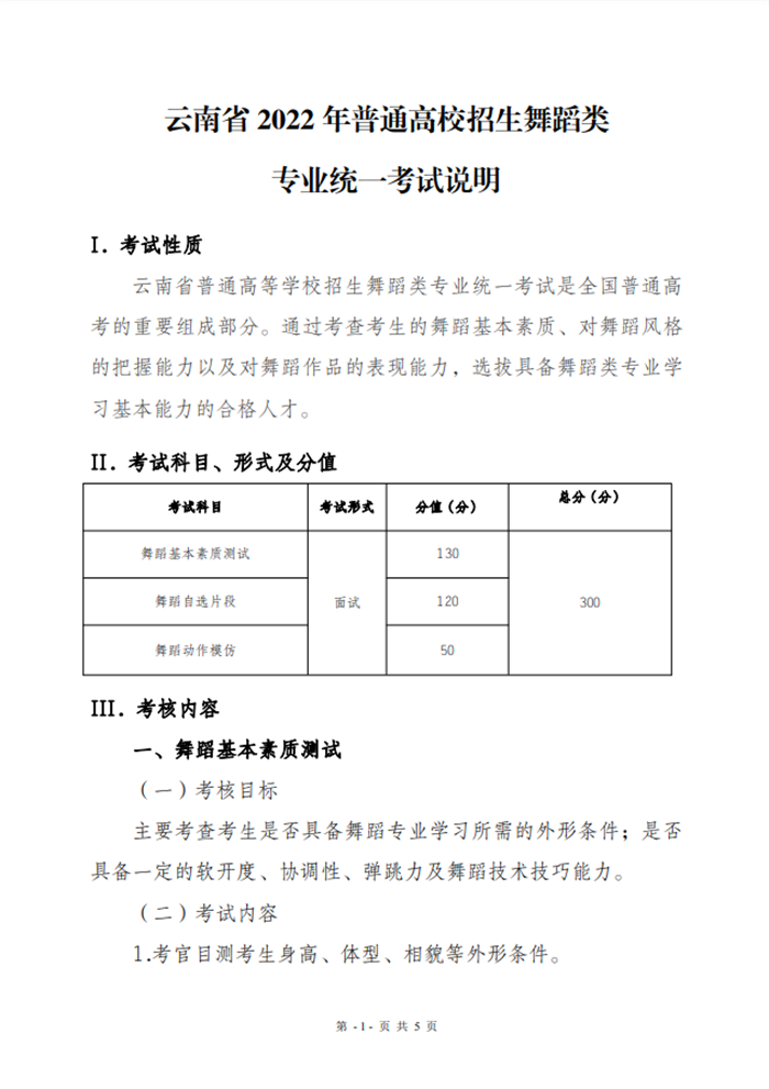 文章来源:云南省招生考试院 云南省2022年普通高校招生舞蹈类专业统一考试说明