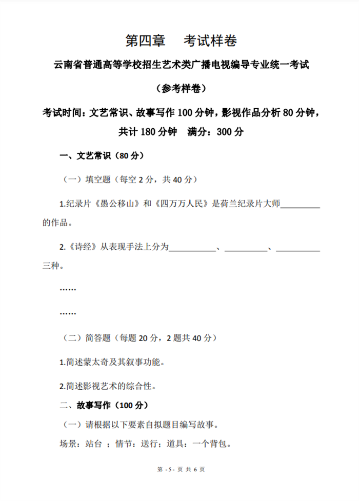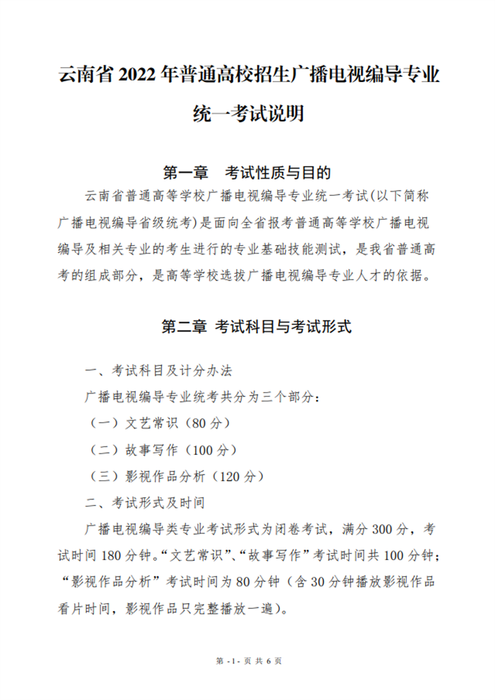 文章来源:云南省招生考试院 云南省2022年普通高校招生广播电视编导专业统一考试说明
