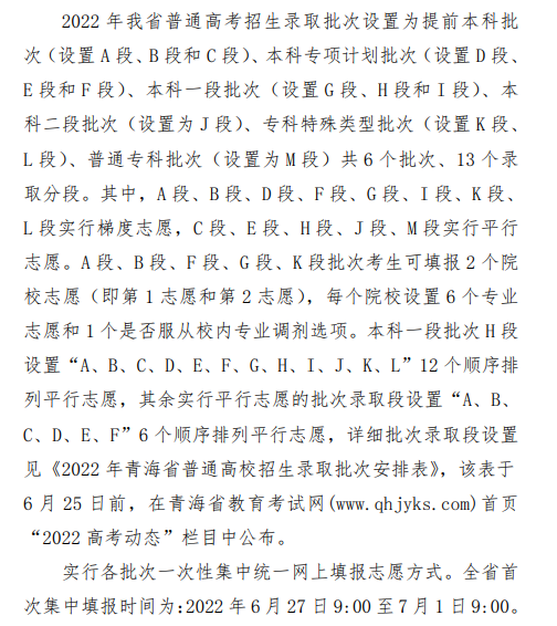 2022年我省招生录取各批次按照从A段-B段-C段-D段-E段-F段-G段-H段-I段-J段-K段-L段-M段的顺序依次投档录取。