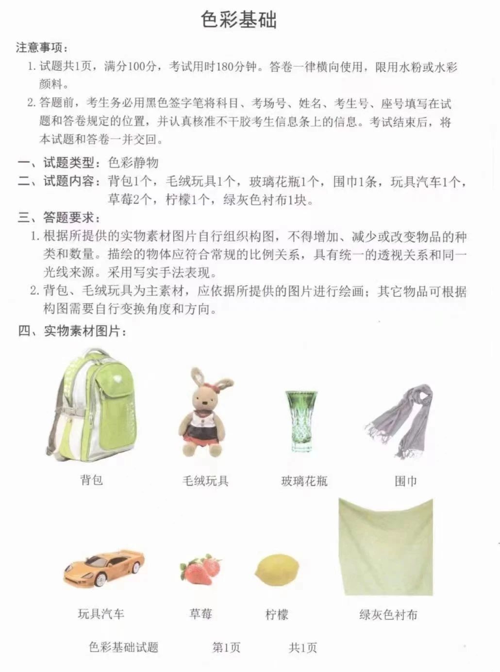 1.根据所提供的实物素材图片自行组织构图,不得增加、减少或改变物品的种类和数量、捕绘的物体应符合常规的比例关系,具有统一的透视关系和同一光线来源。采用写实手法表现。