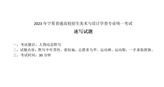 考试内容:人物动态默写,一中年男性,着短袖、志愿者马甲、运动裤、运动鞋,一手拿指挥旗。