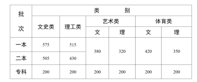 来源:(云南省招生考试院)云南省2022年普通高校招生录取最低控制分数线