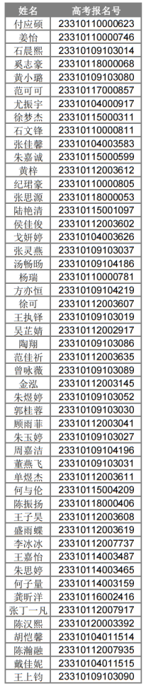 附件:上海体育学院2023年上海市专科层次依法自主招生报考资格审核合格名单