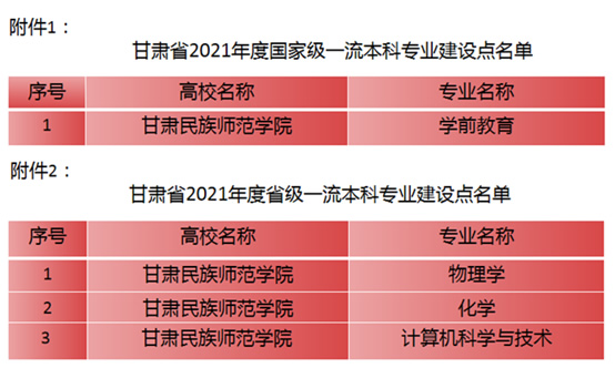 日前,教育部、省教育厅公布了2021年度国家级和省级一流本科专业建设点评审结果,甘肃民族师范学院学前教育专业获批国家级一流本科专业点,物理学等3个专业获批省级一流本科专业建设点。截止目前,全校共有国家级一流本科专业点1个,省级一流本科专业建设点12个。学校将以此为契机,按照一流专业建设条件和标准,持续提升专业内涵建设水平。