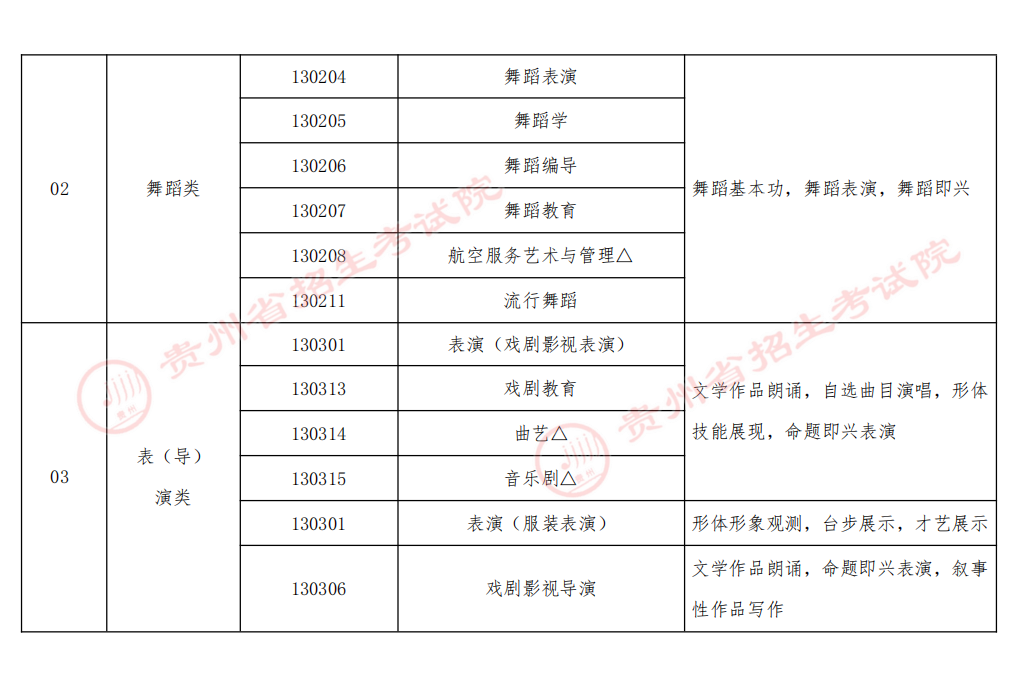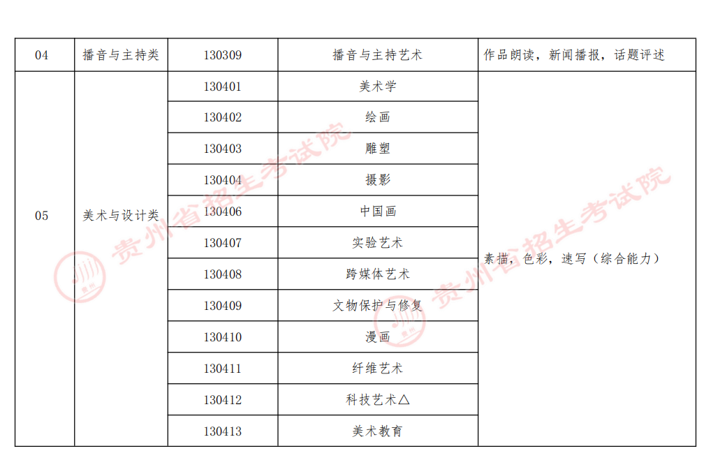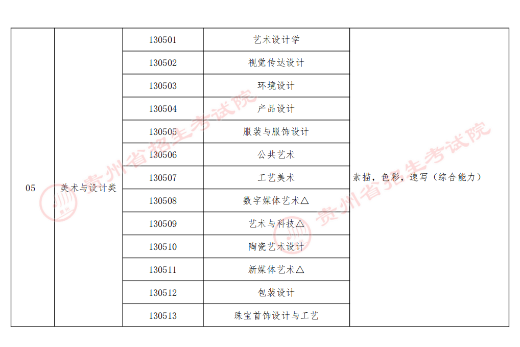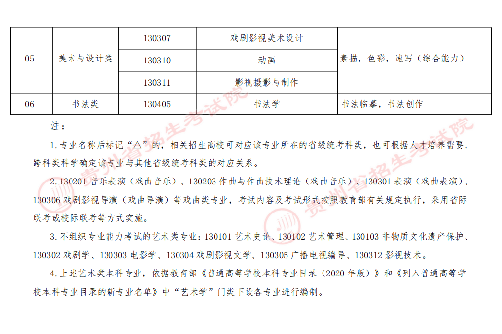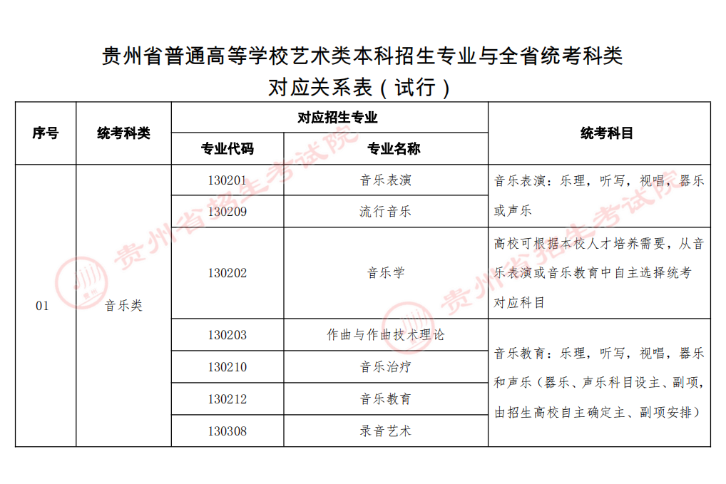 文章来源:贵州省教育考试院 贵州省普通高等学校艺术类本科招生专业与全省统考科类对应关系表(试行)