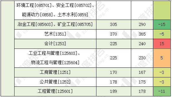 东北大学复试线整体下降5-15分,仅三个专业的复试线有所上升。经济学、工学、管理学相关专业的复试线下降最为明显,多个学科专业复试分数下降达15分。会计[1253]专业复试线逆风上涨15分,工业工程与管理[125603]、物流工程与管理[125604]复试线上涨5分。