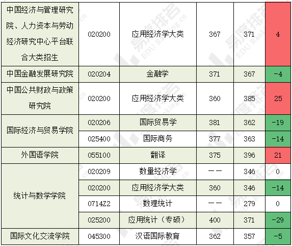 由于上海财经大学并未公布各专业的具体复试线,下文仅对比中央财经大学与对外经济贸易大学的招生、复试线情况。
